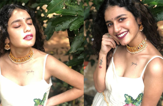 హిందీలో రూపొందుతున్న ఓ మ్యూజిక్ ఆల్బమ్ లో ఈ బ్యూటీ ఆడి పాడబోతోందట. దీనికి సంబంధించిన స్టిల్స్ ప్రస్తుతం సోషల్ మీడియాలో వైరల్గా మారి చక్కర్లు కొడుతున్నాయి. `ఒరు ఆదార్ లవ్`లో తనలో వున్న రొమాంటిక్ యాంగిల్ ని మాత్రమే బయటపెట్టిన ప్రియా ప్రకాష్ వారియర్ తాజా ఆల్బమ్ లో తన గ్లామర్ షోని చూపించబోతోందట. తన ఎద అందాలని ఆరబోస్తూ కవ్విస్తోంది. అంతేనా తన కుడిచేతిపై యెద భాగంపై ..వీపు భాగంపై టాటూలు వేయించుకుని మరీ వాటిని చూపిస్తూ ఫొటోలకు పోజులిచ్చింది.