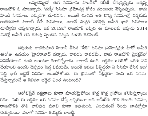 Rajamouli and Aamir Khan Movie Budget