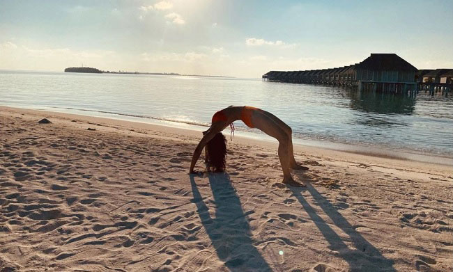 నిన్నటిరోజున బికినీ బీచ్ లో రకరకాల భంగిమల్ని ప్రదర్శిస్తున్న ఫోటోల్ని షేర్ చేసింది. తన సోదరుడు అమన్ తో కలిసి ఉన్నప్పటి ఫోటోని షేర్ చేసింది. తాజాగా నెవ్వర్ బిఫోర్ అనిపించే యోగా ఫోటోని రకుల్ షేర్ చేసింది.
