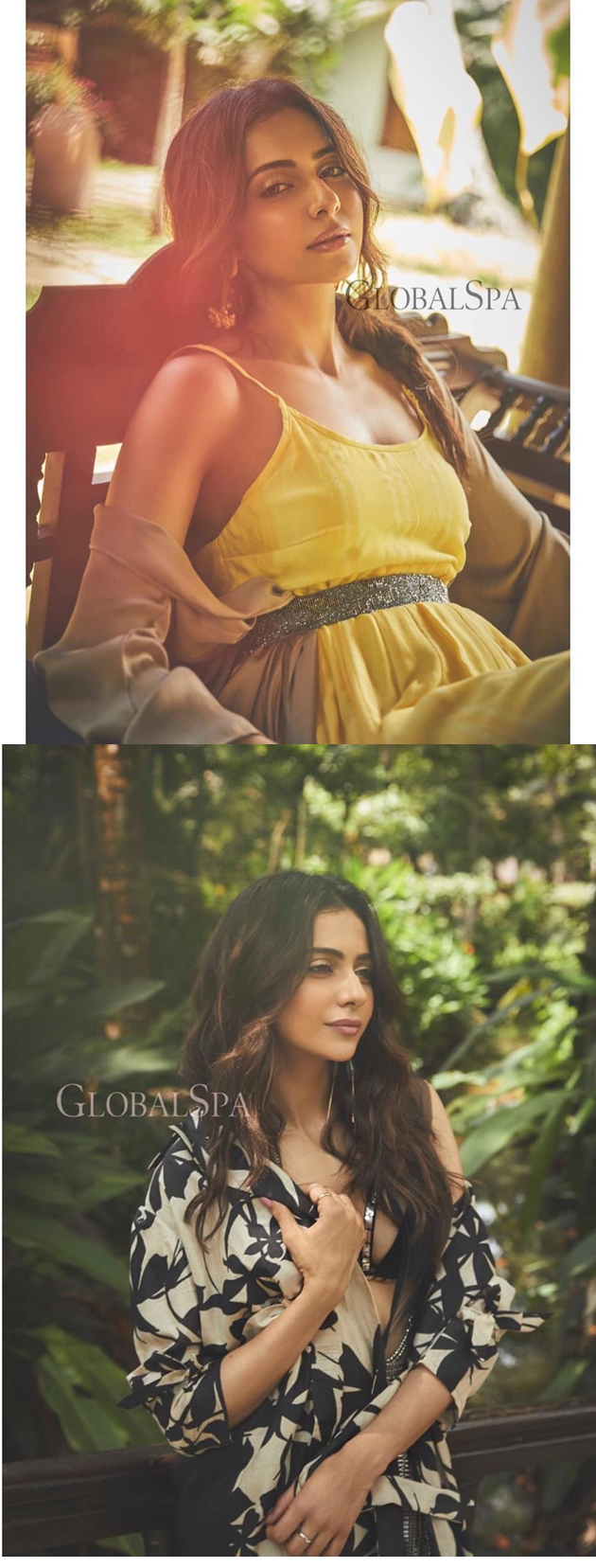 ఇదిలా ఉంటే తాజాగా మరోసారి ఒక సెన్సేషనల్ ఫోటో షూట్ లో పాల్గొని అందరికీ షాక్ ఇచ్చింది. గ్లోబల్ స్పా అనే మ్యాగజైన్ కోసం ఈ ఫోటో షూట్ చేసింది రకుల్. ఒక ఫోటోలో నిమ్మపండు రంగు గౌన్ ధరించి పైన ఊరికే అలా ఒక టాప్ వేసుకొని కూర్చుంది. డ్రెస్ కు తగ్గ మేకప్... ఇయర్ రింగ్స్ తో సూపర్ స్టైల్ ఒలకబోసింది. మరో ఫోటోలో ప్రింటెడ్ షర్టు ధరించి బటన్లు పెట్టుకోకుండా హాట్ నెస్ ను రంగరించింది. ఇంత హాటుగా కనిపించడానికి రకుల్ రోజూ గంటల తరబడి ఎక్సర్ సైజులు చేస్తుందన్న సంగతి తెలిసిందే. అందుకే సూపర్ స్లిమ్ గా ఫిట్ గా కనిపిస్తుంది.