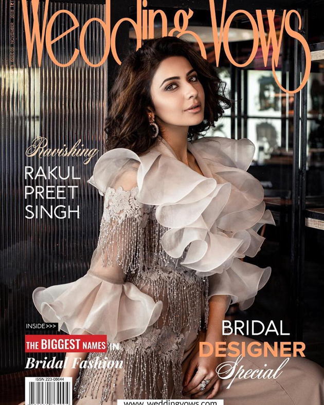 By: Tupaki Desk | 6 Nov 2018 5:36 PM ISTటాలీవుడ్ బ్యూటీ రకుల్ ప్రీత్ సింగ్ సినిమాలు మాత్రమే కాదు గ్లామరస్ ఫోటో షూట్లు చేస్తూ కూడా వార్తల్లో నిలుస్తూ ఉంటుంది. తాజాగా వెడ్డింగ్ వోస్ అనే మ్యాగజైన్ నవంబర్ ఇష్యూ కవర్ పేజీ కోసం ఒక ఫోటో షూట్ చేసింది. పెళ్ళి ప్రమాణాలు అని మ్యాగజైన్ పేరే ఉంది కదా దీంతో ఒక ముచ్చటైన మోడరన్ పెళ్ళి డ్రెస్ లో మెరిసింది.
