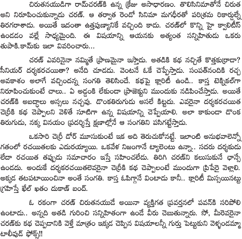 Ram charan Strategy to Hear script