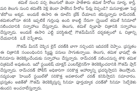 Ram charan Targets Kollywood