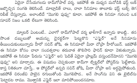 Ram gopal Varma Affair Movie Turns as Mogali puvvu