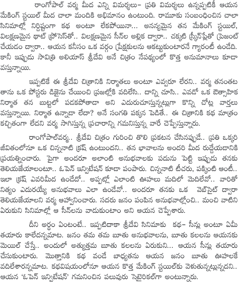 Ram Gopal Varma on Sridevi Movie