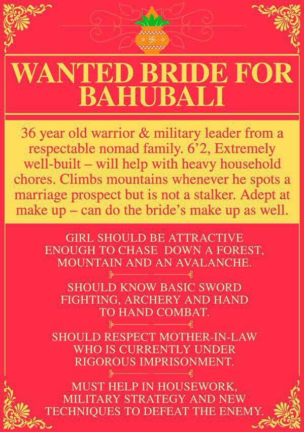 ఫన్నీ: బాహుబలికి వధువు కావలెను