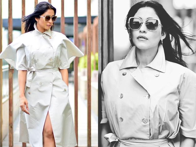 తాజాగా 'ఎవరు' కోసం జరిగిన ఓ ప్రమోషన్ కార్యక్రమానికి మోడరన్ గా తయారై ఒక ఫోటో షూట్ లో పాల్గొంది. ఆ ఫోటోలను తన ఇన్స్టా ఖాతా ద్వారా షేర్ చేసింది. ఈ ఫోటో షూట్ కు ఫోటోగ్రాఫర్ మహేష్ నంబూరి. ఈ ఫోటోలో రెజినా ఒక కోటు లాంటి బటర్ ఫ్లై వింగ్స్ లాంటి స్లీవ్స్ ఉన్న గౌన్ ధరించింది. ఈ గౌన్ వెరైటీ గా ఉంది. కాలర్.. బటన్లు.. థై స్లిట్ ఇలా ఒక హాటు డ్రెస్ కు ఉండాల్సిన లక్షణాలు అన్నీ ఉన్నాయి. స్టైలిష్ గాగుల్స్ ధరించిన రెజీనా ఒక విదేశీ భామ తరహాలో పోజిచ్చింది. ఇయర్ రింగ్స్ కూడా విభిన్నంగా ఉన్నాయి.