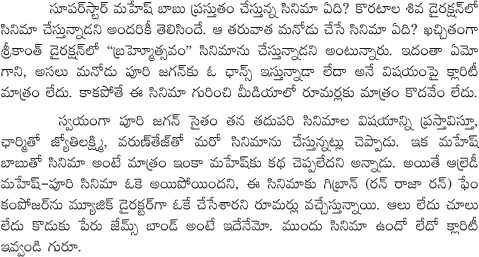 Rumours on Mahesh babu and Puri Jagannath Movie