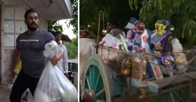 సల్మాన్ ఖాన్ తాజాగా తన పన్వెల్ ఫామ్ హౌస్ సమీపంలో ఉన్న నిరుపేదలకు ఆహార సామాగ్రిని అందించారు. సోషల్ మీడియాలో పోస్ట్ చేసిన ఒక వీడియోలో సల్మాన్ ఖాన్ ఎద్దుల బండ్లు మరియు ట్రాక్టర్లను నిత్యావసరాలతో నింపి సమీప గ్రామాలకు పంపుతున్నారు. ఈ వీడియోలో బాలీవుడ్ తారలు జాక్వెలిన్ ఫెర్నాండెజ్ - లూలియా వంతూర్ - కమల్ ఖాన్ - నికేతన్ మాధోక్ - వాలూస్చా డిసౌసా తదితరులు కూడా నిత్యావసరాలను వాహనాలలో లోడ్ చేస్తుండటం విశేషం. ఈ కార్యక్రమంలో తనకు సహకారం అందించిన అందరికీ సల్మాన్ ధన్యవాదాలు తెలిపారు. ప్రస్తుతం ఈ వీడియో సోషల్ మీడియాలో వైరల్ అవుతుంది.