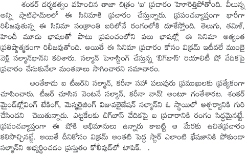 Salman khan Impressed with Shankar I Movie Trailer