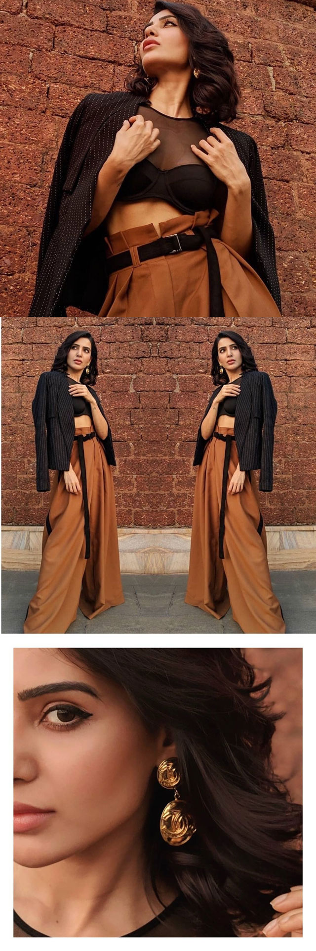 ఇదిలా ఉంటే అప్పుడప్పుడూ హాట్ అండ్ స్టైలిష్ ఫోటో షూట్స్ చేస్తుంది. అక్కినేని ఫ్యాన్స్ కొందరు ఈ ఫోటో షూట్ లపై అభ్యంతరాలు వ్యక్తం చేస్తుంటారు గానీ అలాంటివేవీ పట్టించుకోదు సామ్. తన ప్రొఫెషన్ విషయం.. ఏ డ్రెస్ లు వేసుకోవలన్నది తన ఛాయిస్ అని.. ఇతరులు ఆమెను ఈ విషయంలో ఎలా ఫోర్స్ చేస్తారని అంటుంది. తాజాగా సమంత ఒక ఫోటో షూట్ లో పాల్గొని ఆ ఫోటోలను ఇన్స్టా గ్రామ్ ఖాతా ద్వారా పోస్ట్ చేసింది. చాకొలేట్ కలర్ లూజ్ ప్యాంట్.. బ్లాక్ ఇన్నర్.. పైనేమో అలా కప్పుకున్న బ్లాక్ స్ట్రైప్స్ ఉన్న బ్లేజర్ తో ఒక సూపర్ మోడల్ లాగా కనిపించింది. తన ఎక్స్ ప్రెషన్.. ఆ యాటి ట్యూడ్ మాత్రం ఒక ఫ్యాషన్ దివా ను గుర్తు తెస్తోంది.
