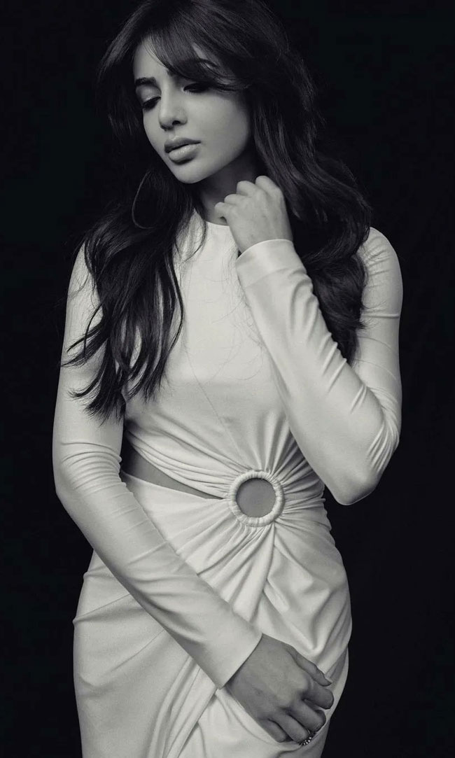 అందులో సామ్ అదిరిపోయే ఔట్ ఫిట్ లో కనిపించింది. బ్లాక్ అండ్ వైట్ కలర్ లో కనిపిస్తున్నప్పటికీ.. చాలా బాగుంది. ఓ పొడవాటి తెలుపు రంగు గౌనులో సామ్ ఫొటోలకు ఫోజులు ఇచ్చింది. ఫుల్ హ్యాండ్స్ తో ఉన్న ఈ డ్రెస్సులో సమంత అదిరిపోయిందనే చెప్పొచ్చు.