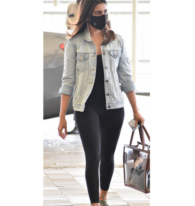 By: Tupaki Desk | 13 Nov 2020 8:37 AM ISTటాలీవుడ్ స్టార్ హీరోయిన్ సమంత అక్కినేని కాస్ట్యూమ్స్ విషయంలో ఎప్పుడు కూడా విమర్శకుల ప్రశంసలు పొందుతూనే ఉంటుంది. ఈమె సందర్బానుసారంగా ధరించే కాస్ట్యూమ్స్ ఆకట్టుకుంటూ ఉంటాయి. ఈసారి చాలా కూల్ అండ్ సూపర్ కాంబినేషన్ లో సమంత కనిపించింది. ఎయిర్ పోర్ట్ లో సమంత ఇలా కెమెరా కన్నుకు చిక్కింది. బ్లాక్ పాయింట్ అండ్ టీషర్ట్ పై సింప్లీ సూపర్ డెనిమ్ లైట్ బ్లూ జాకెట్ లో సమంత అదిరిపోయింది. మ్యాచింగ్ నల్లని మాస్క్ ను కూడా సమంత ధరించింది. చేతిలో చిన్న క్యారీ బ్యాగ్ తో సమంత అలా నడిచి వస్తుంటే వావ్ అన్నట్లుగా ఉంది.