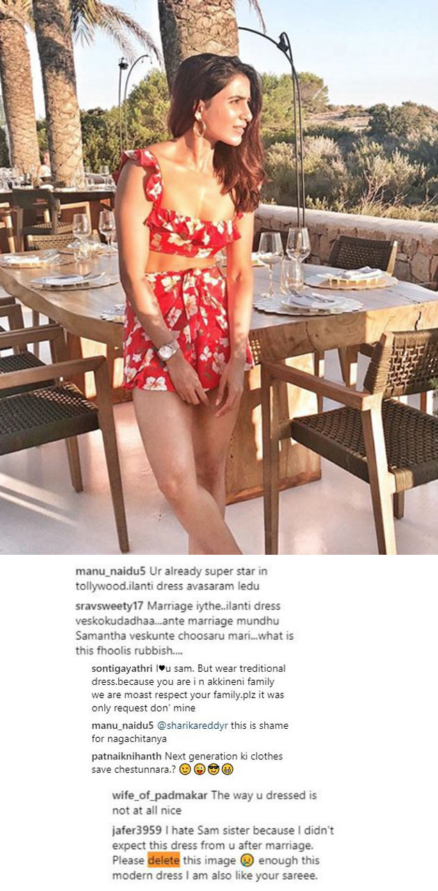 By: Tupaki Desk | 26 Sept 2018 2:45 PM ISTసెలెబ్రిటీలు సోషల్ మీడియాలో ఎంత యాక్టివ్ గా ఉన్నా తాము పెడుతున్న ఫోటోలు, పోస్టుల పట్ల స్పందనల ఎలా ఉంటున్నాయని తెలుసుకోవడం చాలా అవసరం. అంతా బాగున్నప్పుడు సమస్య ఉండదు కానీ ఒకే విషయమై రెండు రకాల అభిప్రాయాలూ వ్యక్తమైనప్పుడే అసలు సమస్య. సమంతాకు అలాంటి పరిస్థితే వచ్చి పడింది. ప్రస్తుతం విదేశాల్లో చైతుతో హాలిడే సీజన్ ని ఎంజాయ్ చేస్తున్న సామ్ అక్కడ తాను ఆస్వాదిస్తున్న క్షణాలను ఫోటోల రూపంలో పోస్ట్ చేస్తోంది.