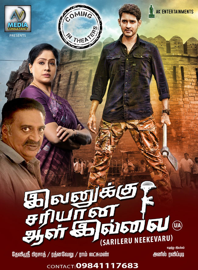 ఇప్పటికే కొన్ని చిన్న సినిమాలు థియేటర్స్ ఓపెన్ చేస్తే రిలీజ్ చేయాలని చూస్తున్నారు. కాకపోతే మాస్ సినిమాలు ఏవీ ప్రస్తుతానికి రెడీగా లేవు. ఈ నేపథ్యంలో స్టార్ హీరో నటించిన 'ఇవణ్ణుకు సరియానా అలిల్లై' వంటి సినిమాని థియేటర్స్ లోకి తీసుకొస్తే థియేటర్స్ కు ఆడియెన్స్ వస్తారనే ఆలోచన చేస్తున్నారట. మహేష్ బాబు కు తమిళనాడులో మంచి ఫాలోయింగ్ ఉంది. మహేష్ సినిమాలు రిజల్ట్ తో సంబంధం లేకుండా క్రమం తప్పకుండా తమిళంలోకి డబ్ చేస్తుంటారు. 'స్పైడర్' అనే డైరెక్ట్ తమిళ్ మూవీ కూడా చేసిన సంగతి తెలిసిందే. ఇలాంటి సమయంలో మాస్ ప్రేక్షకులను ఆకర్షించాడని మహేష్ సినిమాని రిలీజ్ చేసే అవకాశాలు ఉన్నాయి. కాగా, అనిల్ రావిపూడి దర్శకత్వంలో వచ్చిన ఈ చిత్రానికి దేవిశ్రీ ప్రసాద్ సంగీతం అందించారు. రష్మిక మందన్న హీరోయిన్ గా నటించగా విజయశాంతి - ప్రకాష్ రాజ్ - రాజేంద్ర ప్రసాద్ - సంగీత - వెన్నెల కిషోర్ - సత్యదేవ్ తదితరులు ఇతర పాత్రల్లో నటించారు.