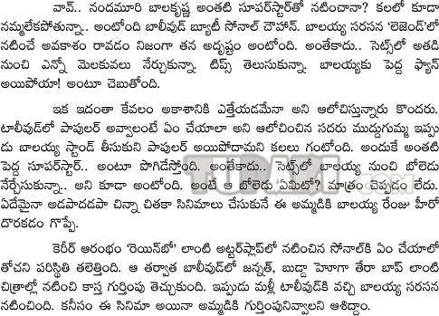 Sonali chauhan praise balakrishna