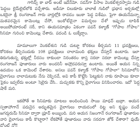 Sri Ranga Rajan Setires on Gopala Gopala Movie