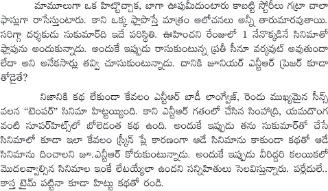 Sukumar Busy with Script Preperation for NTR