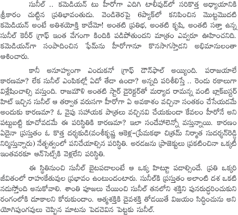 Sunil On tollywood offers