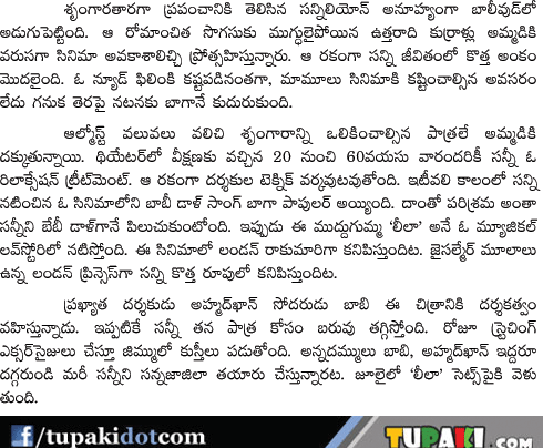 Sunny leone for Leela Movie