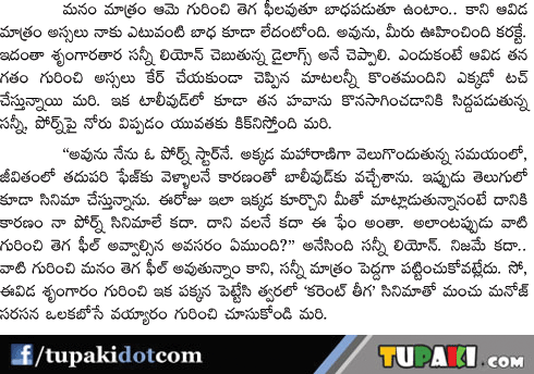 Sunny leone on Tollywood