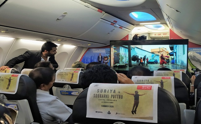 ప్రస్తుతం గురు ఫేం సుధ కొంగర దర్శకత్వంలో సూరారై పొట్రు సెట్స్ పై ఉంది. ఈ సినిమా తెలుగులో `ఆకాశం నీ హద్దురా` అనే టైటిల్ తో రిలీజవుతోంది. చిత్రీకరణ పూర్తిచేసుకుని పొస్ట్ ప్రొడక్షన్ పనులు సాగుతున్నాయి. ఇటీవల ప్రచారంలో టీమ్ వేడి పెంచింది. రొటీన్ కు భిన్నంగా ఈ సినిమాలో తొలి లిరికల్ సాంగ్ ను గాల్లో ఎగురుతున్న విమానం ద్వారా రిలీజ్ చేసారు. టైటిల్ కు తగ్గట్టే పిల్ల పులి అనే పాటను ఎగురుతున్న విమానంలో ఆకాశం మధ్యలో రిలీజ్ చేసి అభిమానులను సర్ ప్రైజ్ చేసారు. దీనికోసం స్పైస్ జెట్ విమానాన్ని అద్దెకు తీసుకోవడం హాట్ టాపిక్ గా మారింది. సూర్య అగరం పౌండేషన్ ద్వారా కొంత మంది పిల్లల్ని ఎంపిక చేసి వాళ్లందర్ని తొలిసారి ప్లైట్ ఎక్కించి సాంగ్ రిలీజ్ చేయడం విశేషం. వీళ్లందరితో పాటు విలక్షణ నటుడు మంచు మోహన్ బాబు ఈ ప్రమోషన్స్ లో పాల్గొన్నారు.