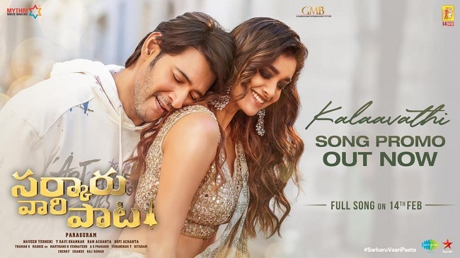 'సర్కారు వారి పాట' సినిమా నుంచి విడుదలైన ఫస్ట్ లుక్ - టీజర్ - స్పెషల్ పోస్టర్స్ మంచి రెస్పాన్స్ తెచ్చుకున్నాయి. ఈ క్రమంలో ఫిబ్రవరి 14న ప్రేమికుల దినోత్సవం సందర్భంగా 'కళావతి' అనే ఫస్ట్ సింగిల్ రిలీజ్ చేయడానికి మేకర్స్ రెడీ అయ్యారు. ఇందులో భాగంగా తాజాగా 36 సెకన్ల ప్రోమో సాంగ్ ని చిత్ర బృందం సోషల్ మీడియాలో వదిలింది.