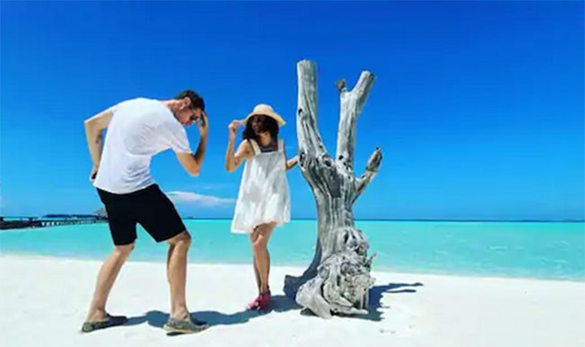 తాప్సీ పన్నూ ఇటీవల తన సోదరీమణులతో కలిసి మాల్దీవుల్లో విహారయాత్రలో ఉన్నారన్న సంగతి విధితమే. అయితే అక్కడికి ప్రియుడు మాథ్యూస్ బో ఉన్నారా? అన్నది సస్పెన్స్ గా మారింది. బ్యాడ్మింటన్ ప్లేయర్ అయిన ఆయనతో ఇలా ఫోటో దిగడమేమిటా? అంటూ హిందీ మీడియాలో ఒకటే గుసగుసలు వేడెక్కిస్తున్నాయి. ఈ జంట ఒక సుందరమైన ఆహ్లాదకరమైన ప్రదేశంలో వారి విలువైన సమయాన్ని ఆస్వాధిస్తున్నారు. ఆ ఇద్దరూ తెల్లని ఇసుక మీద డ్యాన్స్ పోజులివ్వడం ఆ వెనుకగా బులుగు సముద్రం నుంచి కాంతులు పరుచుకున్నాయి ఆ ఫోటోలో.