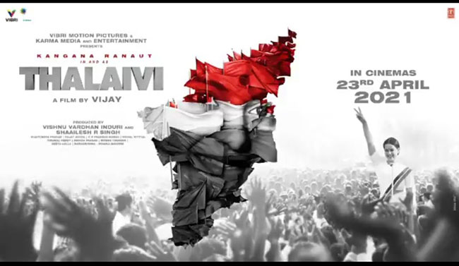 By: Tupaki Desk | 25 Feb 2021 12:41 PM ISTతమిళనాడు దివంగత ముఖ్యమంత్రి జయలలిత జీవిత కథ ఆధారంగా బాలీవుడ్ బ్యూటీ కంగనా రనౌత్ టైటిల్ రోల్ లో తెరకెక్కుతున్న సినిమా 'తలైవి - ది రివల్యూషనరీ లీడర్'. తమిళ దర్శకుడు ఎ.ఎల్. విజయ్ రూపొందిస్తున్న ఈ చిత్రాన్ని విష్ణు ఇందూరి - శైలేష్ ఆర్ సింగ్ కలిసి నిర్మిస్తున్నారు. పాన్ ఇండియా లెవల్ లో ఈ చిత్రాన్ని ఏప్రిల్ 23న థియేటర్స్ లో విడుదల చేయనున్నట్లు మేకర్స్ తాజాగా ప్రకటించారు. అయితే ఆల్రెడీ ఆ డేట్ ని 'టక్ జగదీష్' లాక్ చేసిపెట్టుకున్న సంగతి తెలిసిందే.