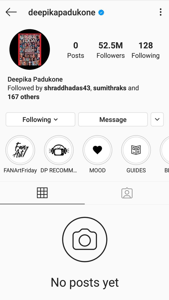 దాదాపు అయిదున్నర కోట్ల మంది దీపిక పదుకునేను ఫాలో అవ్వడానికి కారణం ఆమె షేర్ చేసిన ఫొటోలు మరియు వీడియోలు. ఇప్పుడు ఆ వీడియోలు మరియు ఫొటోలు అన్నింటిని ఆమె తొలగించి ప్రతి ఒక్కరిని కూడా మోసం చేసింది. తన అకౌంట్ నుండి అన్ని పోస్ట్ లను డిలీజ్ చేసింది. ఇప్పటికే ట్విట్టర్ ఖాతాను ఖాళీ చేసిన దీపిక పదుకునే తాజాగా ఇన్ స్టా గ్రామ్ అకౌంట్ ను కూడా ఖాళీ చేయడం పట్ల రకరకాలుగా అనుమానాలు వ్యక్తం అవుతున్నాయి. కోట్ల మంది ఫాలోవర్స్ ఉన్న ఖాతాల నుండి ఒక్కసారిగా ఇలా పోస్ట్ లు అన్నింటిని తీయడం పట్ల ఉద్దేశ్యం ఏంటీ అనేది తెలియాల్సి ఉంది.
