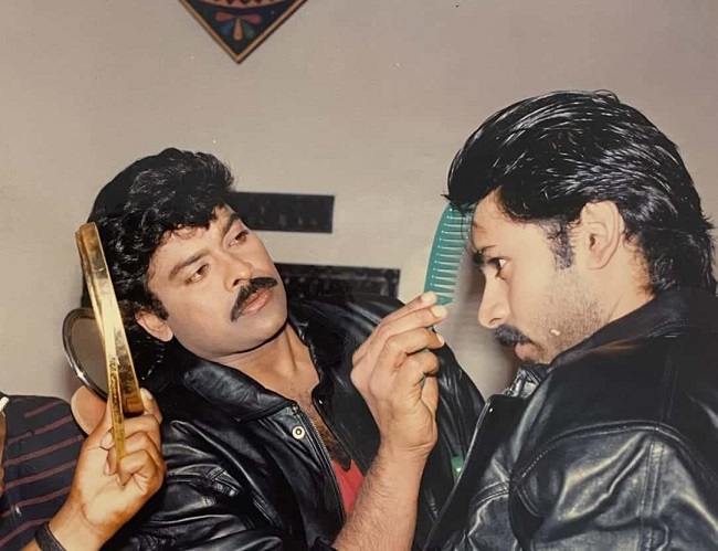 త్రోబ్యాక్ పిక్ః పవన్ మేకప్ సెట్ చేస్తున్న చిరు ఆనందంలో ఫ్యాన్స్!