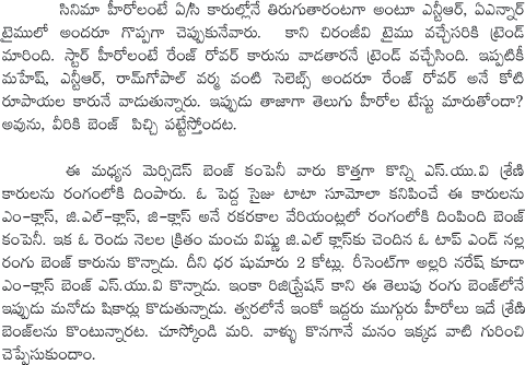 Tollywood Heroes Crazy about Benz cars