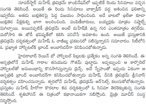 Trivikram Directs Mahesh babu for Rainbow Ad