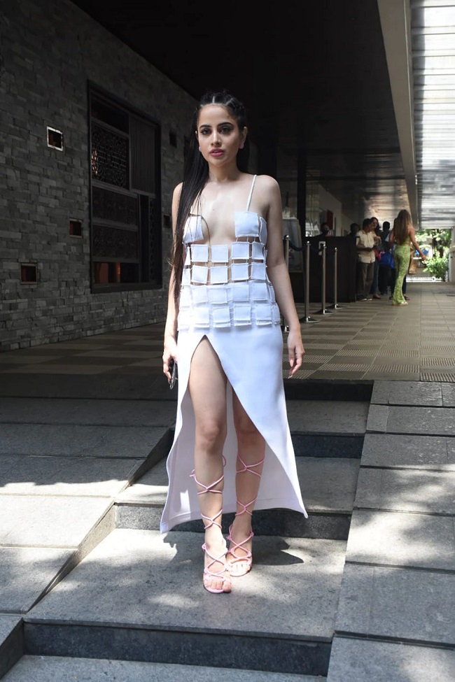 చిట్టి పొట్టి బట్టల్లో చిల్లింగ్ బేబీలా చెలరగిపోతోంది. ఖరీదైన పొడవాటి దుస్తుల్ని విక్రయించే వ్యాపారల పొట్ట కొడుతోందన్న విమర్శలు ఉన్నాయి. తాజాగా ఉర్ఫీ లేటెస్ట్ డ్రెస్ కూడా అదే విధంగా ఉండటంతో ప్రజలు ఆమెను తీవ్రంగా ట్రోల్ చేశారు. ఈసారి ఉర్ఫీ బ్లాక్ డిజైన్ థై హై స్లిట్ డ్రెస్ ని ధరించింది. డ్రెస్ పై కేవలం తెల్లటి బ్లాక్ లు మాత్రమే కనిపిస్తాయి. ఉర్ఫీ ఈ తెల్లని దుస్తులను హెవీ ఐ మేకప్ తో హీటెక్కించింది. నడుము వరకు బ్లాక్లు గా డిజైన్ చేసిన ఈ డ్రెస్ ని చూసి జనాలు నోరెళ్లబెడుతున్నారు. ట్రోల్స్ గురించి మాట్లాడే ముందు ఉర్ఫీ మేకప్ హెయిర్ స్టైల్ ప్రతిదీ యూనిక్ అని చెప్పాఇ. ఆమె హాఫ్ ఓపెన్ హెయిర్ స్టైల్,.. డార్క్ ఐ మేకప్.. సింపుల్ హోప్స్ పింక్ షేడ్ తో కూడిన మ్యాట్ లిప్ స్టిక్ తో అదరగొట్టింది. ఉర్ఫీ బేబీ పింక్ కలర్ లేస్ డిజైన్ హీల్స్ ధరించింది. ఉర్ఫీ ఈ తెల్లటి దుస్తులలో టూహాట్ గా కనిపిస్తోంది. కానీ ఈ దుస్తుల డిజైన్ గురించి ఎంపిక చేసుకున్న మోడల్ పైనా ప్రజలు ఉర్ఫీని ట్రోల్ చేశారు.