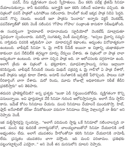 Venkatesh about Pawan kalyan and Gopala Gopala Movie