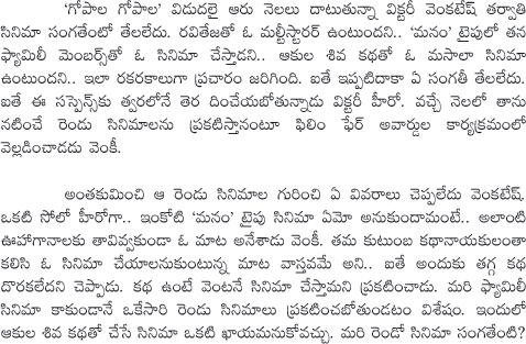 Venkatesh To Announce his Upcoming Movies
