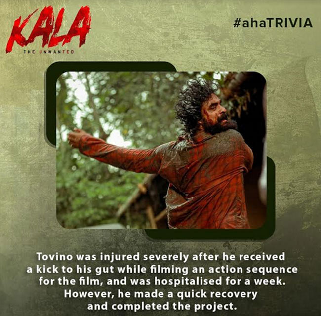 వాస్తవ సంఘటన ఆధారంగా దర్శకుడు రోహిత్ వి. ఎస్ ''కాలా'' చిత్రాన్ని తెరకెక్కించాడు. ఒక కుక్క కారణంగా ఇద్దరు వ్యక్తుల మధ్య జరిగే రివేంజ్ డ్రామానే ఈ సినిమా. హీరో టొవినో థామస్ తన పాత్రలో ఒదిగిపోయాడు. ఈ సినిమాకు సంబంధించిన యాక్షన్ సన్నివేశాల షూటింగ్ జరుగుతున్న సమయంలో టోవినో థామస్ ప్రమాదానికి గురైయ్యాడు. తీవ్ర గాయాలతో ప్రాణాపాయ స్థితితో హాస్పిటల్ లో చేసిన టాలెంటెడ్ హీరో.. వారం తర్వాత కొలుకున్నాడు. వెంటనే తిరిగి చిత్రీకరణలో పాల్గొని మిగతా సినిమాని పూర్తి చేసాడంటే టోవినో డెడికేషన్ లెవల్ ని మెచ్చుకొని తీరాలంతే.