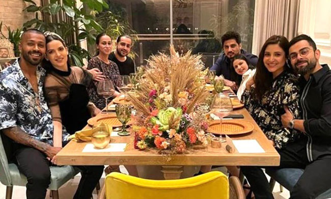 వారి నూతన సంవత్సర వేడుకల విందు నుండి ఫోటోలను కోహ్లీ ఇన్ స్టా వేదికగా షేర్ చేశారు. ఈ చిత్రాలలో ఒకదానిలో జంటలు డిన్నర్ టేబుల్ చుట్టూ కూర్చుని పోజులిచ్చారు. విరాట్ - అనుష్క తమ సోషల్ మీడియాల్లోనూ ఈ అద్భుతమైన చిత్రాలను పంచుకున్నారు. వారి అభిమానులకు నూతన సంవత్సర శుభాకాంక్షలు తెలిపారు.