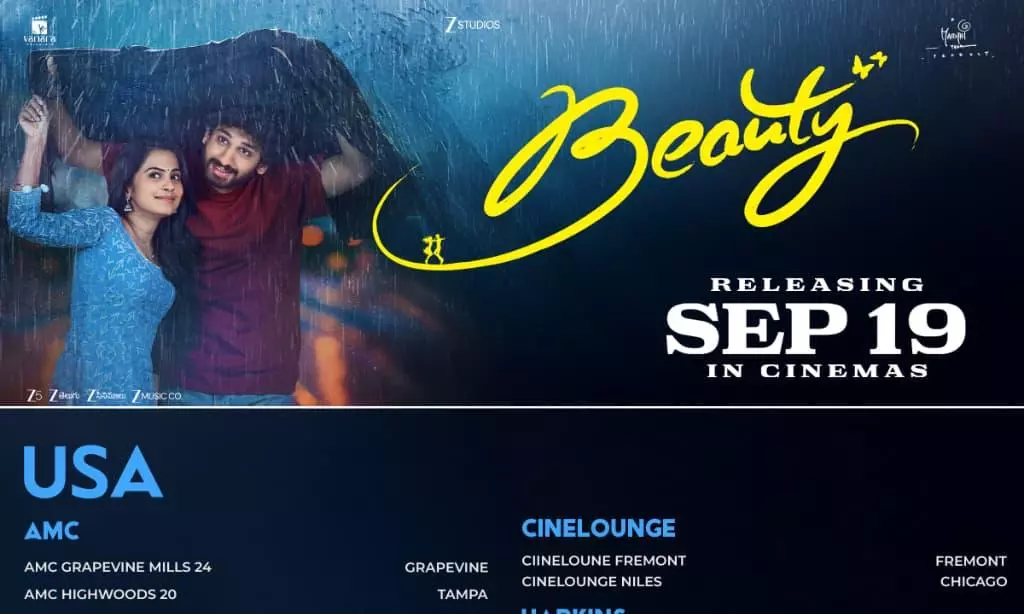 AMC, Regal, Marcus, Harkins, Cinelounge వంటి థియేటర్లలో షెడ్యూల్స్ ఫిక్స్ చేశారు. న్యూ జెర్సీ, న్యూయార్క్, చికాగో, టెక్సాస్, కాలిఫోర్నియా, అట్లాంటా, టాంపా, ఒమాహా, మిన్నెసోటా, నాష్విల్లే లాంటి నగరాల్లో బ్యూటీ ప్రదర్శించనుంది. కెనడాలోనూ టొరంటో, మిస్సిసాగ, రిచ్మండ్ హిల్లో రిలీజ్ కానుంది.