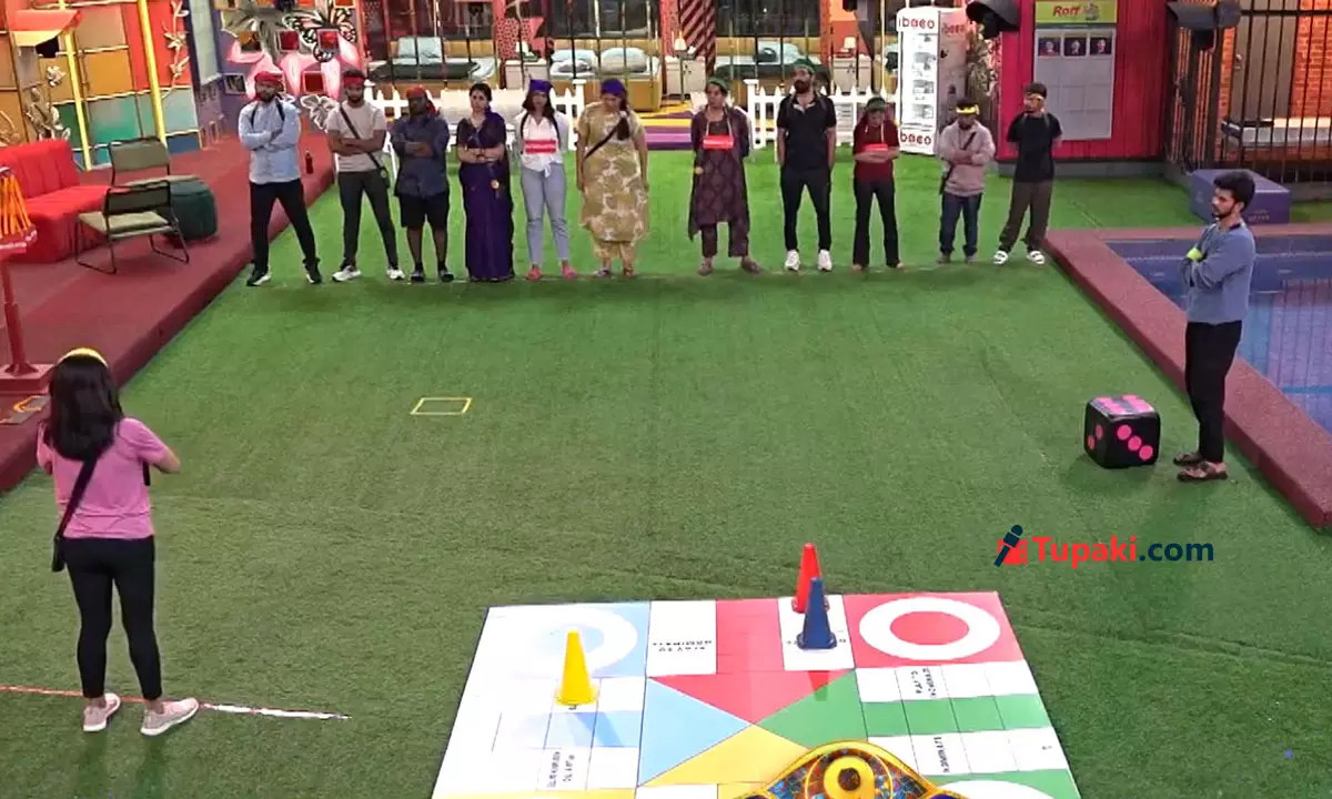 నామినేషన్స్ కోసం బిగ్ బాస్ మిగిలిన హౌస్ మెట్స్ ని ముగ్గురు చొప్పున టీంస్ గా విడగొట్టాడు. వారికి పవన్ డైస్ వేసి నెంబర్ చెబుతాడు. ఆ నెంబర్ తో వాళ్ల కోన్ ముందుకు తీసుకెళ్లి అక్కడ నామినేట్ అని వస్తే ఒకరిని నామినేట్ చేయాలి. లేదా నామినేషన్ టాస్క్ అని వస్తే బిగ్ బాస్ ఇచ్చిన ఎలాస్టిక్ తాడుతో ముగ్గురు కలిసి ఒక బాక్స్ ని గార్డెన్ ఏరియాలో ఏర్పాటు చేసిన పాయింట్ లో పెట్టాలి.