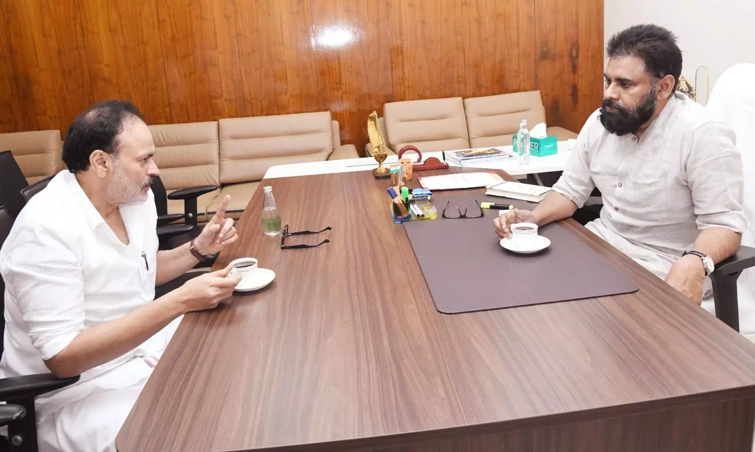 పదవుల్లో ఉన్న వారు ప్రభుత్వంపై విపక్షాలు చేస్తున్న విమర్శలను తిప్పకొట్టడంలో విఫలమవుతున్నారని పవన్ ఆగ్రహం వ్యక్తం చేసినట్లు ప్రచారం జరిగింది. ప్రధానంగా సోదరుడు నాగబాబు వైఖరిని ఆయన తప్పుపట్టారని, తిరుమల లడ్డూ విషయంలో నాగబాబు గట్టిగా మాట్లాడాలని హితవుపలికారని చెబుతున్నారు. ఈ వార్తలు వచ్చిన తర్వాత నాగబాబు సోషల్ మీడియా వేదికగా రెండు వీడియోలు విడుదల చేసి ప్రతిపక్షంపై విమర్శలు గుప్పించారు. ఈ క్రమంలో గురువారం అసెంబ్లీ ఆవరణలో నాగబాబు ఉప ముఖ్యమంత్రిని కలిసి మాట్లాడటం జనసేన వర్గాలను ఆకర్షించిందని అంటున్నారు. మొత్తానికి ముగ్గురు సెలబ్రెటీలు అసెంబ్లీలో కలుసుకోవడం అందరి దృష్టిని ఆకర్షించింది.