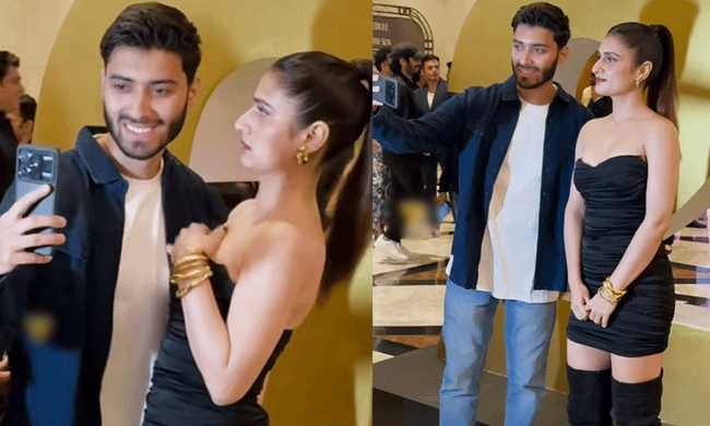 By: Tupaki Desk | 30 March 2025 11:13 AM ISTఅభిమాని హీరోయిన్ దగ్గరకు వచ్చాడు. సెల్ఫీ కావాలన్నాడు. దానికి ఎలాంటి అభ్యంతరం చెప్పని నటి సెల్ఫీ కోసం ఫోజిస్తోంది. అయితే అతడి స్పర్శ.. అతడి శ్వాసను ఇబ్బంది ఫీలైంది. ఇంకేం ఉంది.. అతడి నుంచి దూరం జరిగింది. అతడినే తథేకంగా చూస్తూ సెల్ఫీ కోసం మరీ ఇంత దగ్గరైపోతున్నాడేంటి? అన్నట్టుగా పెట్టింది ఫేసు. నిజానికి ఆ అభిమాని దగ్గర ఒకటే ఇంటెన్షన్.. తనతో దగ్గరగా సెల్ఫీ దిగాలని. అంతకుమించి ఎలాంటి ఇంటెన్షన్ కనిపించడం లేదు ఆ ఫేస్ లో. ఏంటో కానీ, దంగల్ బ్యూటీ ఫాతిమా సనా షేక్ ఇబ్బందిని ఫీలవుతున్న ఫేస్ పెట్టింది. స్టన్ అయిపోయి అతడినే చూస్తూ ఉండిపోవడం కూడా అందరి దృష్టిని ఆకర్షించింది.