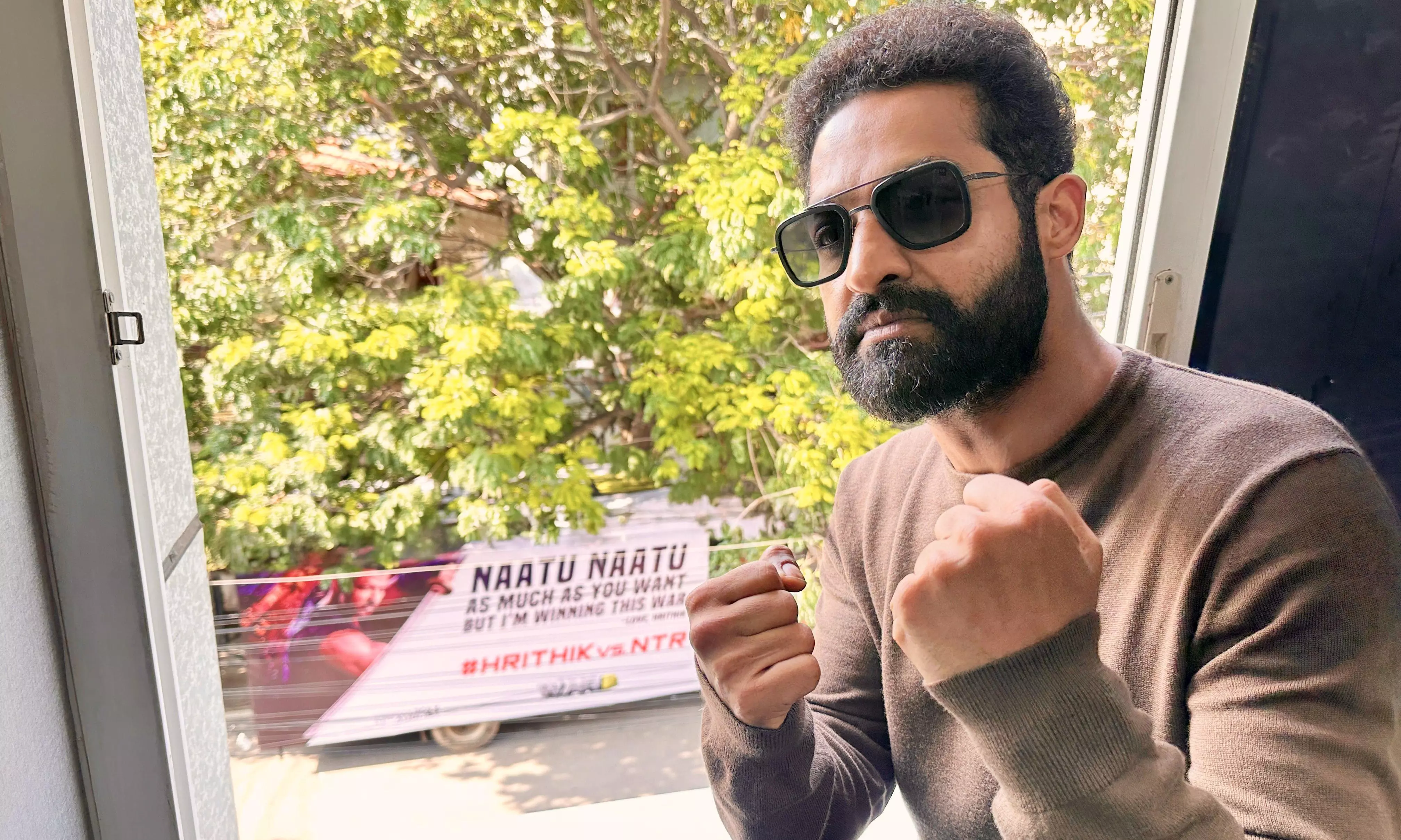 తన బాల్కనీలో నిలబడిన ఫొటోను షేర్ చేశారు. "మంచి రిటర్న్ గిఫ్ట్ ఇచ్చారు హృతిక్ సార్.. కానీ ఇది ముగింపు కాదు.. ఆగస్టు 14న నిజమైన యుద్ధం ప్రారంభమవుతుంది. అప్పుడు కలుద్దాం" అంటూ ఎన్టీఆర్. హృతిక్ పంపిన వాహనంపై నాటు నాటు సాంగ్ గా లాగా ఎంతైనా ఎగురు, కానీ వార్ లో గెలిచేది మాత్రం నేనే" అని ఉంది.