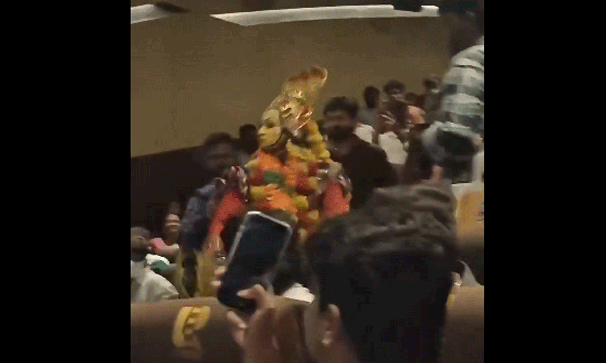 ముఖ్యంగా కాంతార 2 సినిమాలో రిషబ్ పంజుర్లి దేవుడు ఆవహించినప్పుడు ఎలా అయితే నృత్యం చేశారో.. సరిగ్గా అలాగే థియేటర్లో కూడా పంజుర్లీ దేవుడు ఆవహించినట్టుగా అచ్చం అలాగే అరుస్తూ థియేటర్లో సందడి చేస్తూ.. డాన్స్ చేశారు.. దానితో ఆ వ్యక్తికి సంబంధించిన ఫోటోలు, వీడియోలను తీయడానికి అక్కడి ఆడియన్స్ తెగ ఆసక్తి కనబరిచారు. పైగా వాటిని సోషల్ మీడియాలో షేర్ చేయడంతో.. ఇప్పుడు సోషల్ మీడియాలో అవి వైరల్ గా మారుతున్నాయి.
