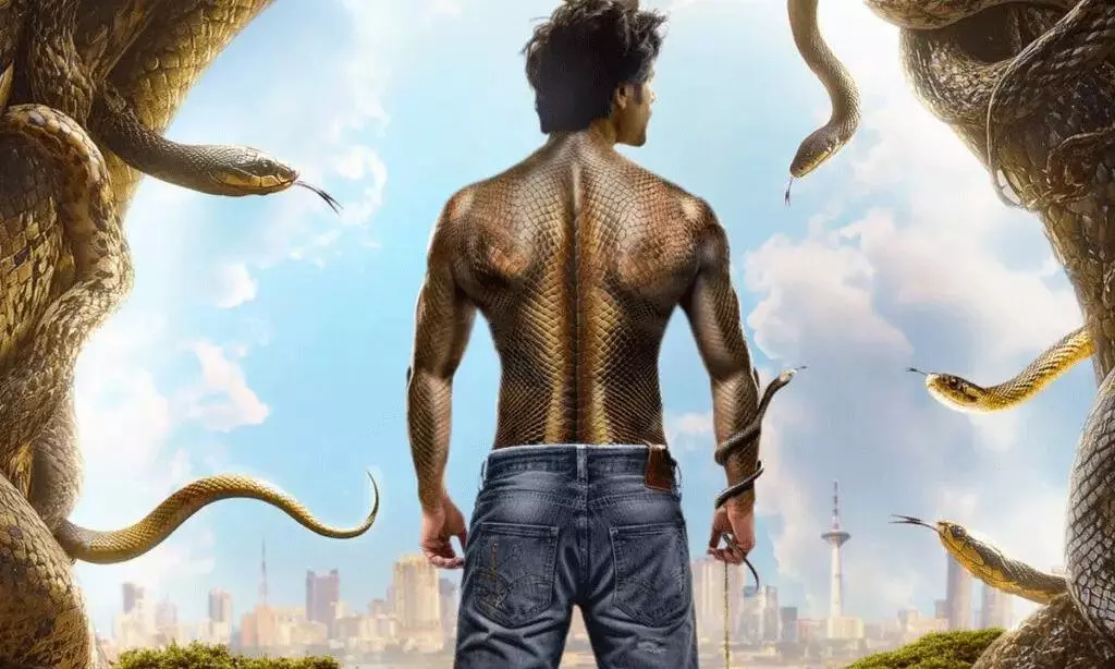 ఈ మోషన్ పోస్టర్ లో కార్తీక్ బ్లూ జీన్స్ వేసుకుని కెమెరా వైపుకు వీపు చూపిస్తూ కనిపించాడు. ఒక పాముల గుహ లోపల నిలబడి, దూరంగా ఉన్న సిటీ వైపు చూస్తున్న కార్తీక్ చర్మం ఆకుపచ్చగా మారుతూ, ఆ తర్వాత పొలుసులు లాగా పాము ఆకృతిలోకి మారడం చాలా ఇంట్రెస్టింగ్ గా అనిపించింది. మోషన్ పోస్టర్ ను బట్టి ఈ సినిమాలో కార్తీక్ రూపం పాములా మారుతూ ఉంటుందని క్లారిటీ ఇచ్చేశారు.