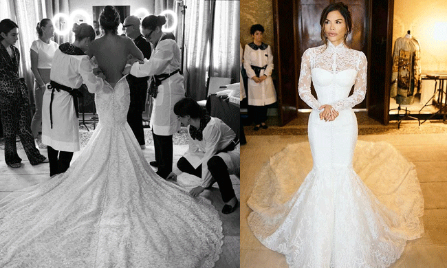 లారెన్ సాంచెజ్ తన పెళ్లికి ప్రత్యేకంగా డోల్స్ & గబ్బానా ఆల్టా మోడా సంస్థ రూపొందించిన వెడ్డింగ్ గౌన్ను ఎంపిక చేసుకుంది. ఇది విన్న క్షణంలో సాధారణంగా ఏదైనా డిజైనర్ గౌన్ అనిపించవచ్చు కానీ దీని వెనుక ఒక అద్భుతమైన ప్రయాణం ఉంది. ఈ గౌన్ తయారీకి ఏకంగా 900 గంటల సమయం పట్టింది. అద్భుతమైన చేతిపనితో తయారైన ఇటాలియన్ లేస్, 180 సిల్క్ చిఫ్ఫాన్తో కవర్ చేసిన బటన్లు ఈ గౌన్కు ప్రీమియమ్ అందాన్ని తీసుకొచ్చాయి.