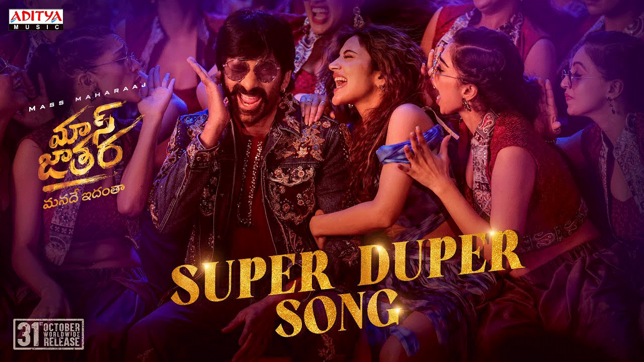 'మాస్ జాతర' ఆల్బమ్ నుంచి ఇప్పటికే 'తు మేరా లవర్', 'ఓలే ఓలే', 'హుడియో హుడియో' పాటలు విడుదలై చార్ట్బస్టర్లుగా నిలిచాయి. సోషల్ మీడియాలో రీల్స్ రూపంలో ఈ పాటలు తెగ వైరల్ అయ్యాయి. ఇప్పుడు ఆ జోష్ను కంటిన్యూ చేస్తూ, నాలుగో పాటగా 'సూపర్ డూపర్' అనే ఫుల్ మాస్ బీట్ ని విడుదల చేశారు. ఈ పాట కూడా రవితేజ మార్క్ ఎనర్జీతో, శ్రీలీల డ్యాన్స్లతో ఫ్యాన్స్కు కిక్ ఇచ్చేలా ఉంది.