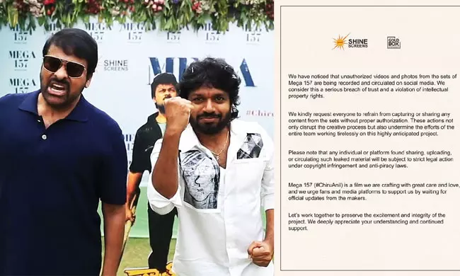 లీకైన కంటెంట్ ను ఎవరైనా షేర్ చేసినా, ఎక్కడైనా అప్లోడ్ చేసినా వాటిని గుర్తించి వారికి కాపీరైట్ వేయడంతో పాటూ పైరసీ వ్యతిరేక చట్టాల ప్రకారం కఠినమైన చర్యలు కూడా తీసుకుంటామని మేకర్స్ హెచ్చరించారు. తామెంతో ప్రేమతో తెరకెక్కిస్తున్న మెగా157 సినిమాకు ఆడియన్స్ కూడా మద్దతు ఇవ్వాలని, ఇలాంటి లీకులను ఎంకరేజ్ చేయకూడదని నిర్మాతలు కోరారు.