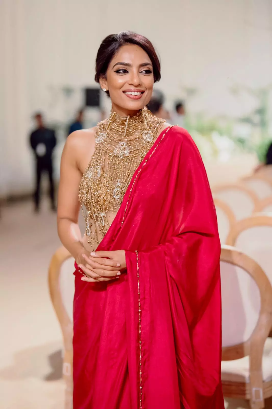 ముఖ్యంగా శోభిత ఎంపిక చేసుకున్న ఎరుపు రంగు సాదా చీర, కాంబినేషన్ డిజైనర్ గోల్డెన్ బ్లౌజ్ ప్రత్యేక ఆకర్షణగా నిలిచాయి.