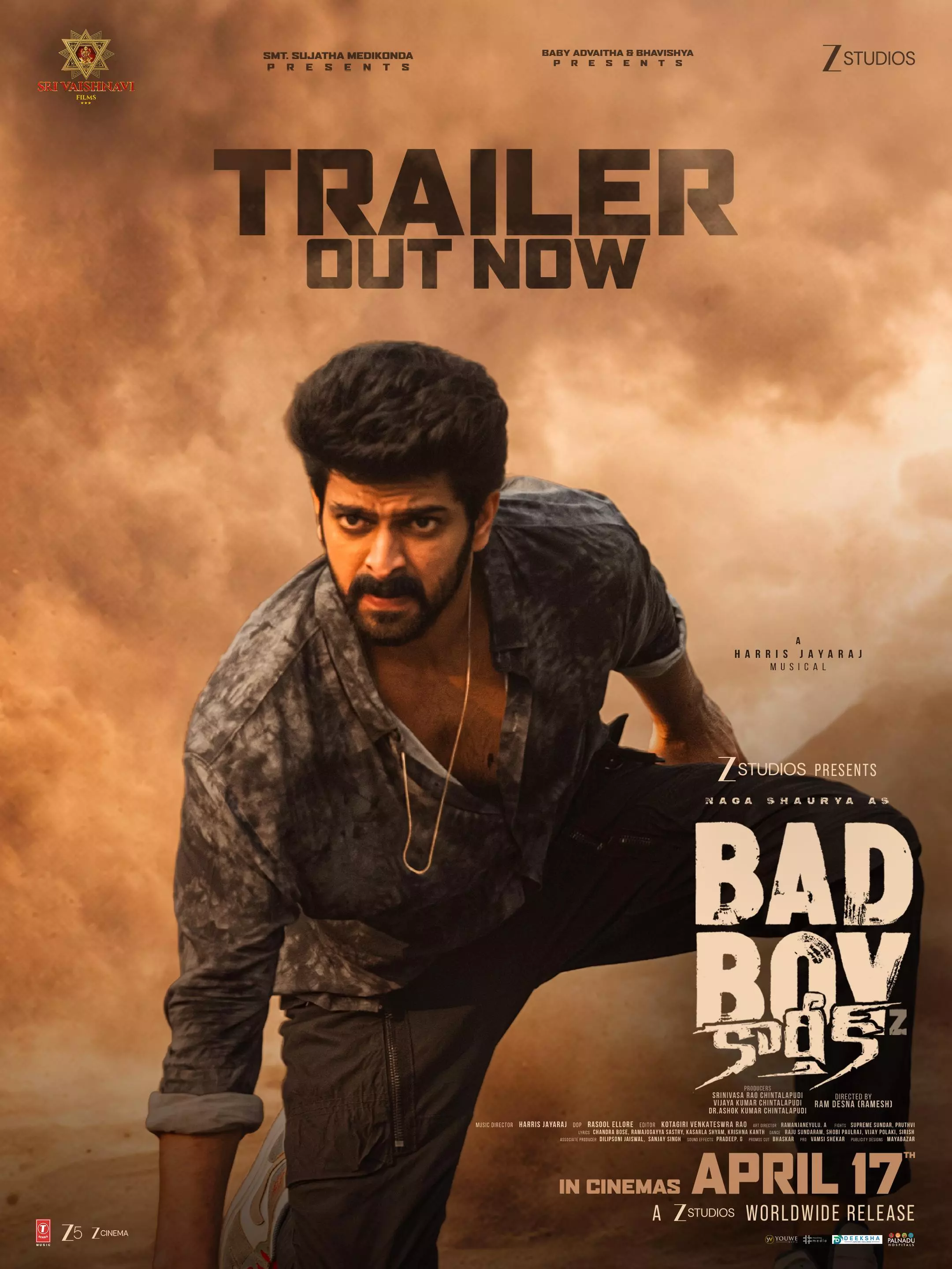 By: M Prashanth | 6 April 2026 7:19 PM ISTయువ హీరో నాగశౌర్య అనగానే సాఫ్ట్ రోల్స్, లవర్ బాయ్ ఇమేజ్ గుర్తుకు వస్తుంది. కానీ ఈసారి తన రూటు మార్చి పూర్తిస్థాయి మాస్ యాక్షన్ డ్రామాతో ప్రేక్షకుల ముందుకు రాబోతున్నారు. రామ్ దేసిన (రమేష్) దర్శకత్వంలో తెరకెక్కిన ఈ మాస్ చిత్రానికి ‘బ్యాడ్ బాయ్ కార్తీక్’ అనే టైటిల్ పెట్టారు. శ్రీ వైష్ణవి ఫిలింస్ బ్యానర్పై శ్రీనివాసరావు చింతలపూడి నిర్మించిన ఈ సినిమా ఏప్రిల్ 17న విడుదల కాబోతోంది. ఇక నేడు చిత్ర యూనిట్ ట్రైలర్ను విడుదల చేసింది.